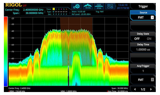 FMT頻率範本觸發是即時頻譜分析儀才獨有的觸發模式。您可以快速構建範本,並對符合範本規則的信號進行準確的定位及觸發,從而發現監測範圍內偶發的異常信號。