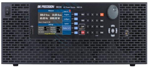 9833B/9832B/9831TC可程式交直流電源供應器(Programmable AC/DC Power Source)利用高速PWM設計方式,大大的提高了功率密度輸出。模組化動力設計,提高設備的可靠度,並且方便未來維護保養。9833B/9832B/9831TC交流電壓輸出端無變壓器設計,不僅降低輸出阻抗,而且還能提供出直流電壓(DC)成份,更可模擬出交流電壓含有直流偏壓(AC+DC)的狀態。低直流電壓輸出雜訊(≦300mVrms/≦3Vpp),讓使用者不用額外購買設備,也可得到穩定的直流電壓測試。