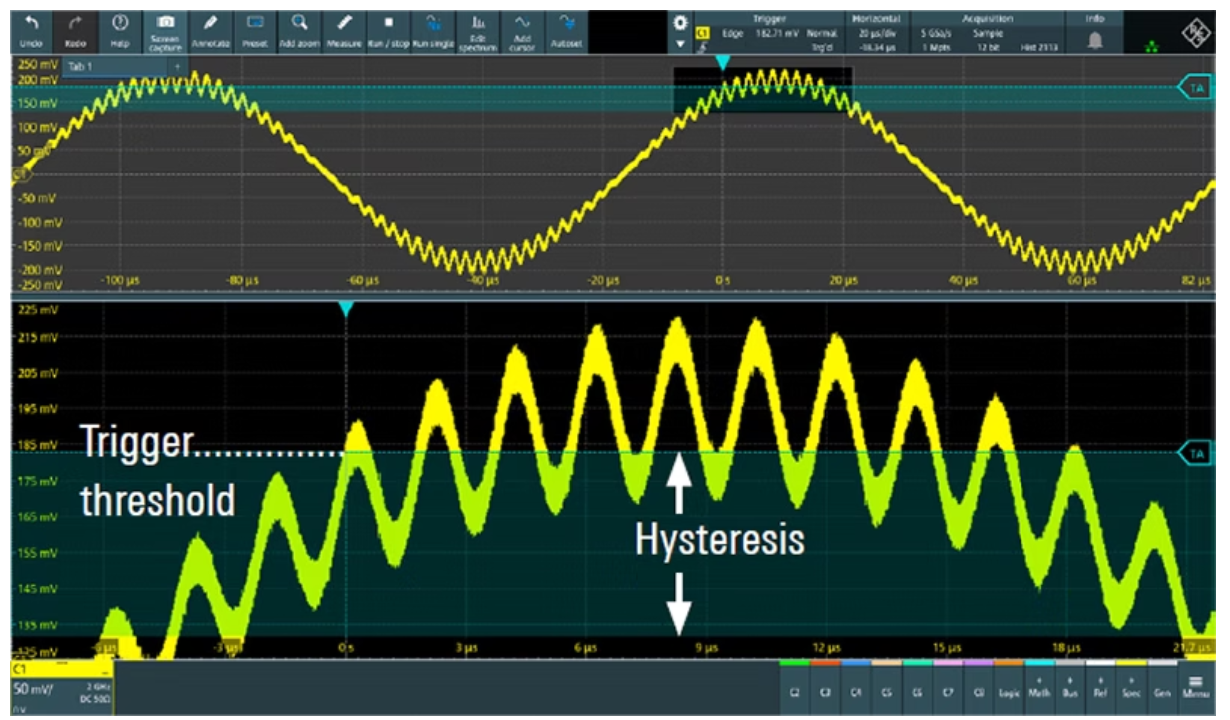 首創 8 通道示波器,使用者可調整觸發遲滯 (hysteresis)