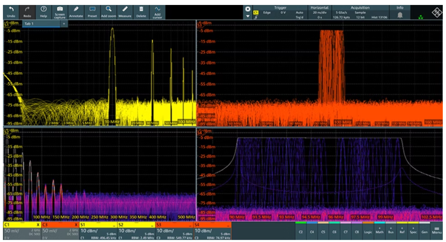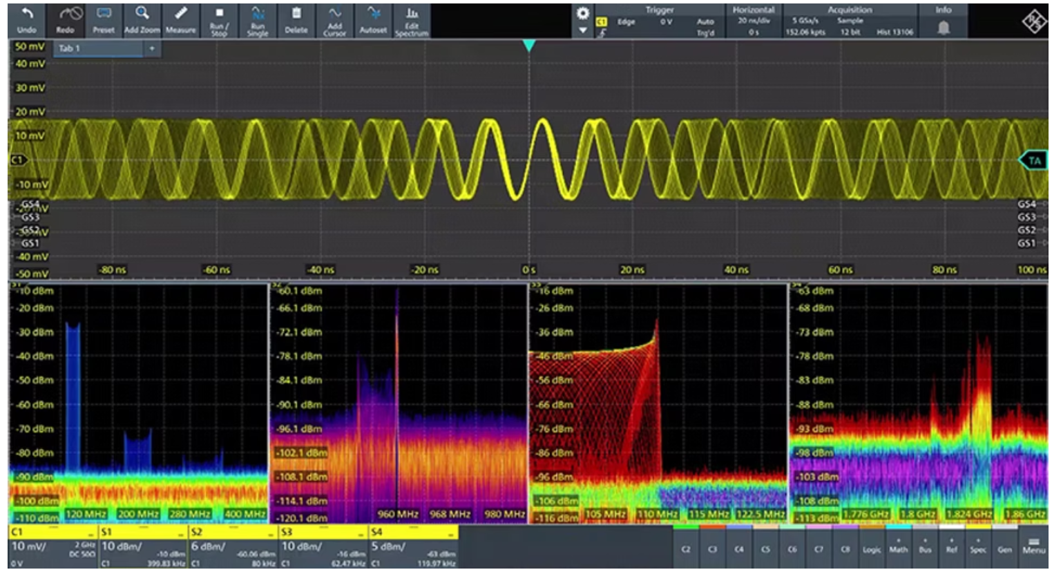速度的進化:多通道快速取樣、數學運算功能、以及無縫頻譜量測,實現僅 21 ns 極短的盲區時間。