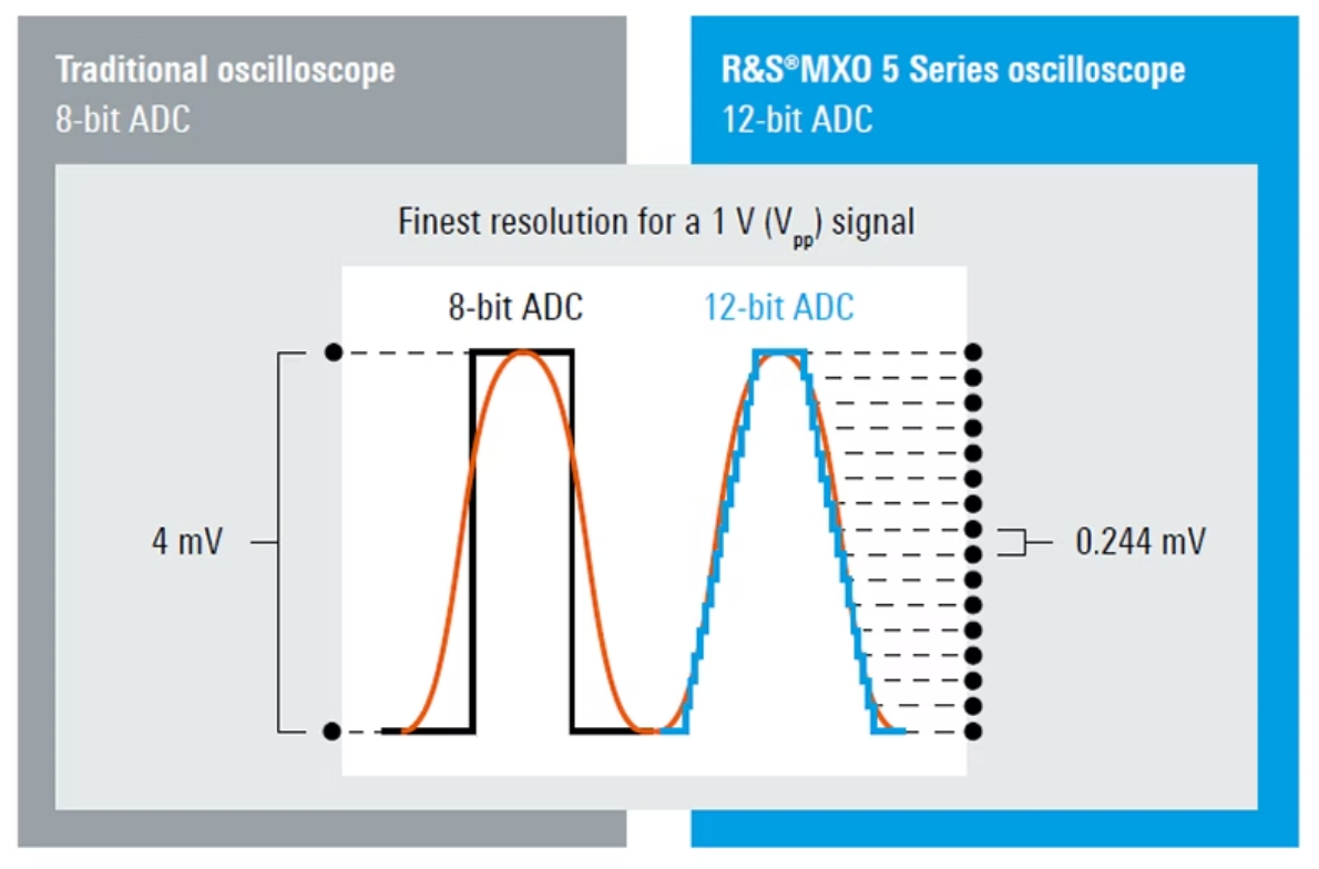 精確觀察訊號 - 八通道示波器中最低量測雜訊和最高垂直解析度的機種