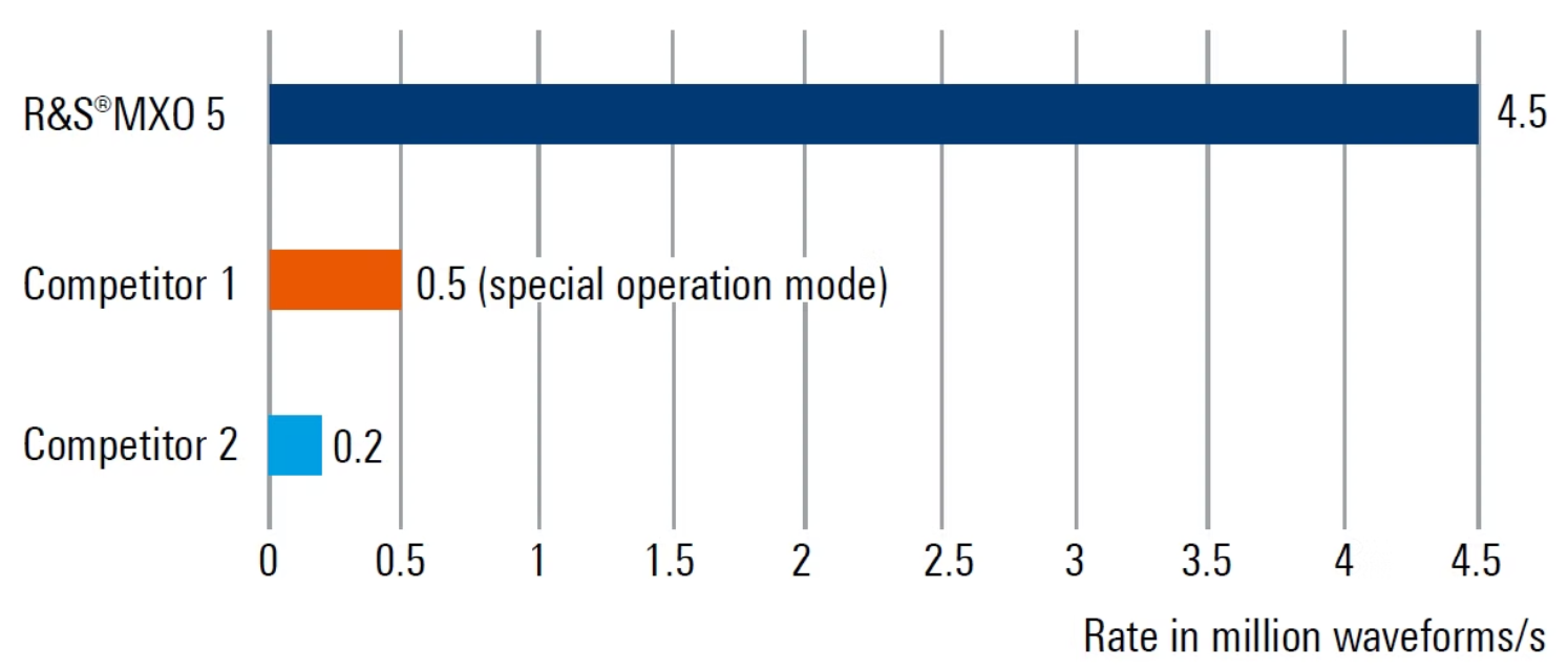 R&S MXO 5C 系列的數位觸發靈敏度高出競爭觸發系統達 10,000 倍。