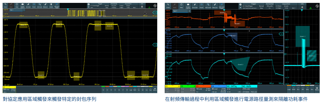 類比、頻譜和數學運算波形上可以標記32個區域觸發分區