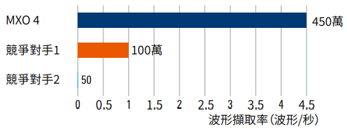 ► 業界首創示波器的波形擷取率超過450萬波形/秒
