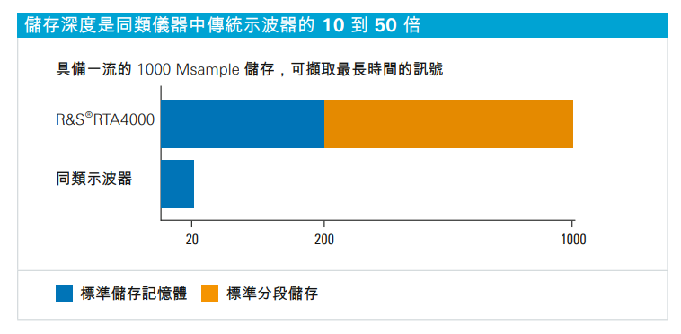 R&SRTA4000系列包含200MHz、350MHz、500MHz與1GH的頻寬可供選擇(頻寬可日後軟體升級)。