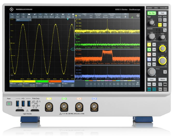 R&S®MXO5的波形擷取率超過450萬波形/秒,能夠在需要檢測錯誤的應用中進行訊號測試。R&S®MXO5幾乎沒有盲區時間, 能夠檢測到其他示波器可能遺漏的罕見事件和隨機事件。最重要的是,R&S®MXO5可以在啟動多達四路通道的情況下保持高擷取率。基本量測和數學運算基於硬體加速。 R&S®MXO5提供四路基於硬體加速的頻譜通道。示波器每路通道的頻譜擷取率高達45000FFT/s,總擷取率可達 180000 FFT/s,能夠快速測試和除錯諧波、EMI或其他需要利用一流頻譜功能的應用。