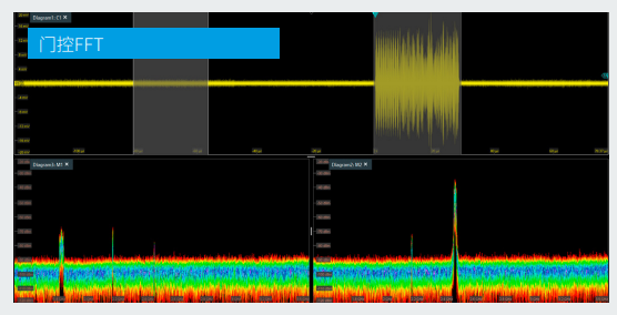 頻域中的模板觸發非常適用於檢測偶發輻射頻率。根據違規即停的觸發條件,頻譜違反頻域模板時示波器會停止信號捕獲。門控FFT功能在用戶定義的窗口中顯示時域和頻域相關性,為用戶提供更好的見解。