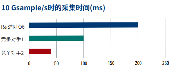 R&S®RTO6示波器標配為每路通道提供200Mpoints的存儲深度。諸如無縫捕獲長脈沖或協議序列的應用,通常要求更大的存儲。R&S®RTO6示波器的存儲深度最高可擴展至2Gpoints。ASIC信號處理確保在深存儲情況下也可順暢工作。