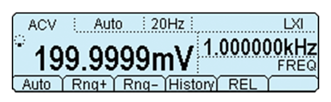 測量交流信號的電壓或電流時,也可以測量頻率。 此時,電壓或電流會顯示在主顯示屏上,頻率會顯示在次顯示屏上。